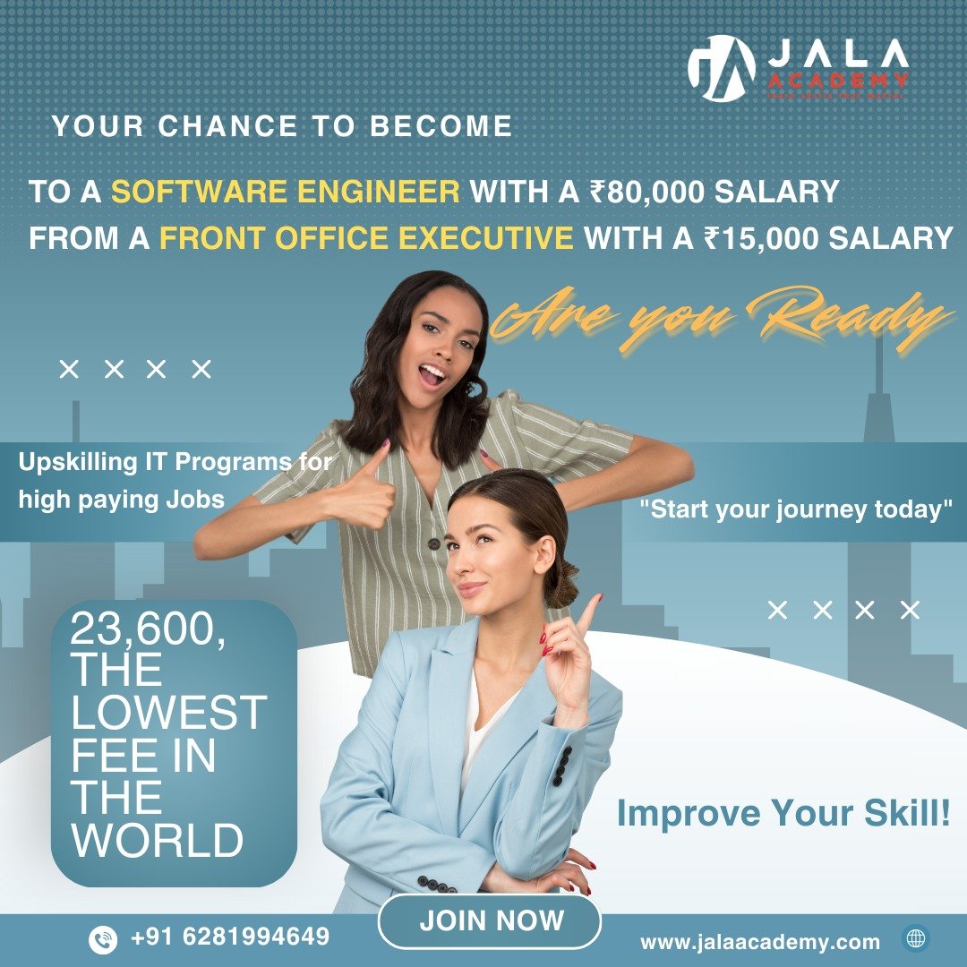 JALA Academy offers a unique learning opportunity for aspiring IT professionals to master 7 in-demand technologies at the cost of one. With a special program priced at INR 23,600 for 10 years, students gain access to comprehensive training designed to build strong technical skills and prepare them for real-world industry requirements.