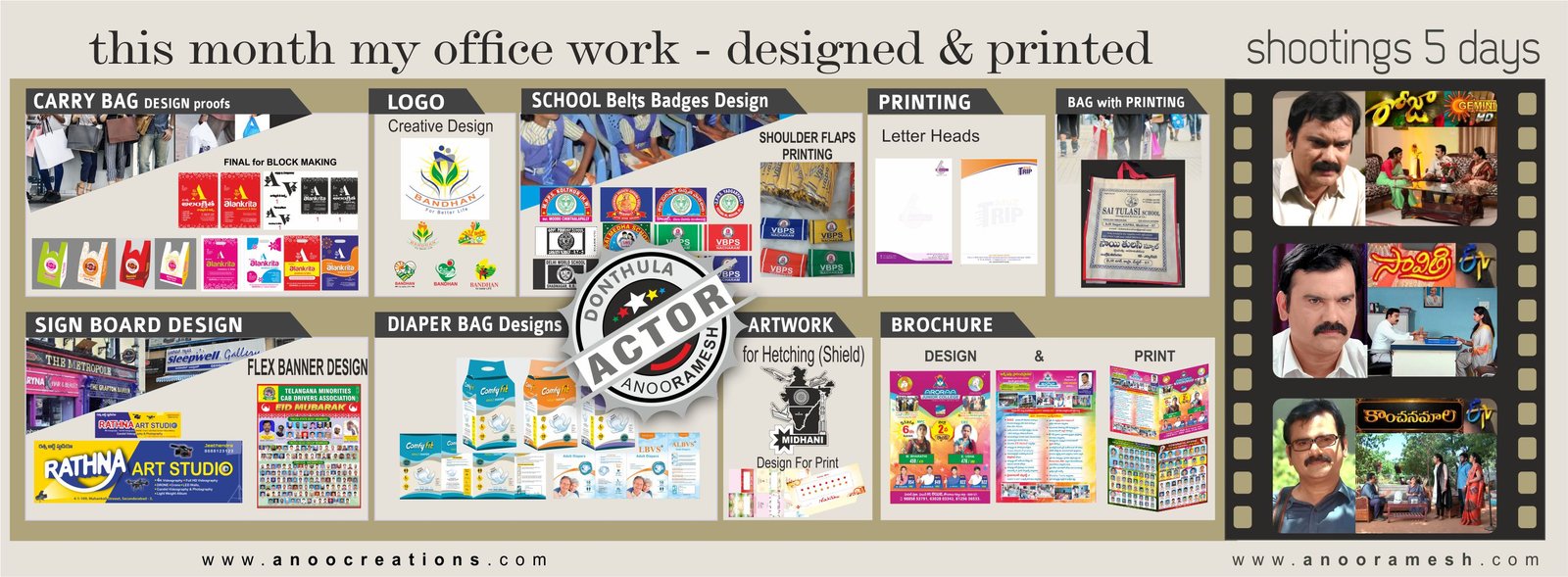 Anoo Arts is a one-stop creative studio offering complete designing & printing solutions, backed by strong experience in media and acting.